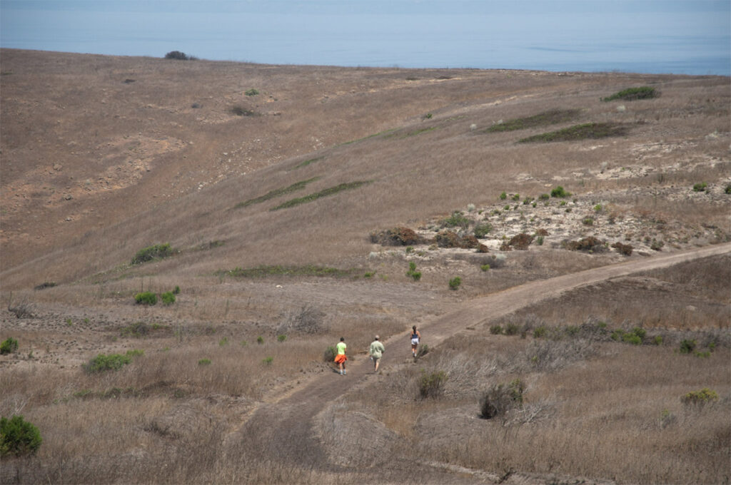 Father, son, and daughter on a hike along one of Santa Cruz Islands’ ~49 miles of trails.
